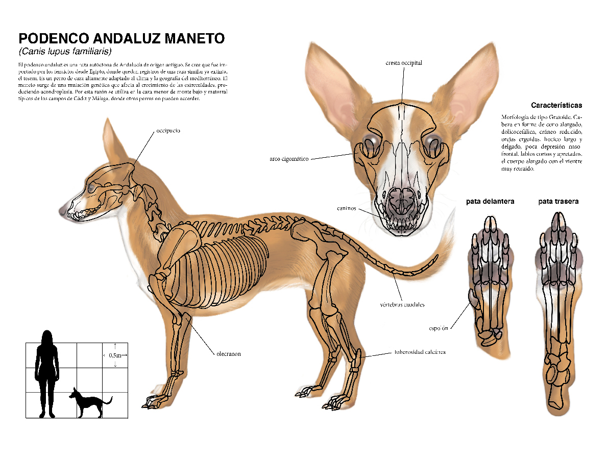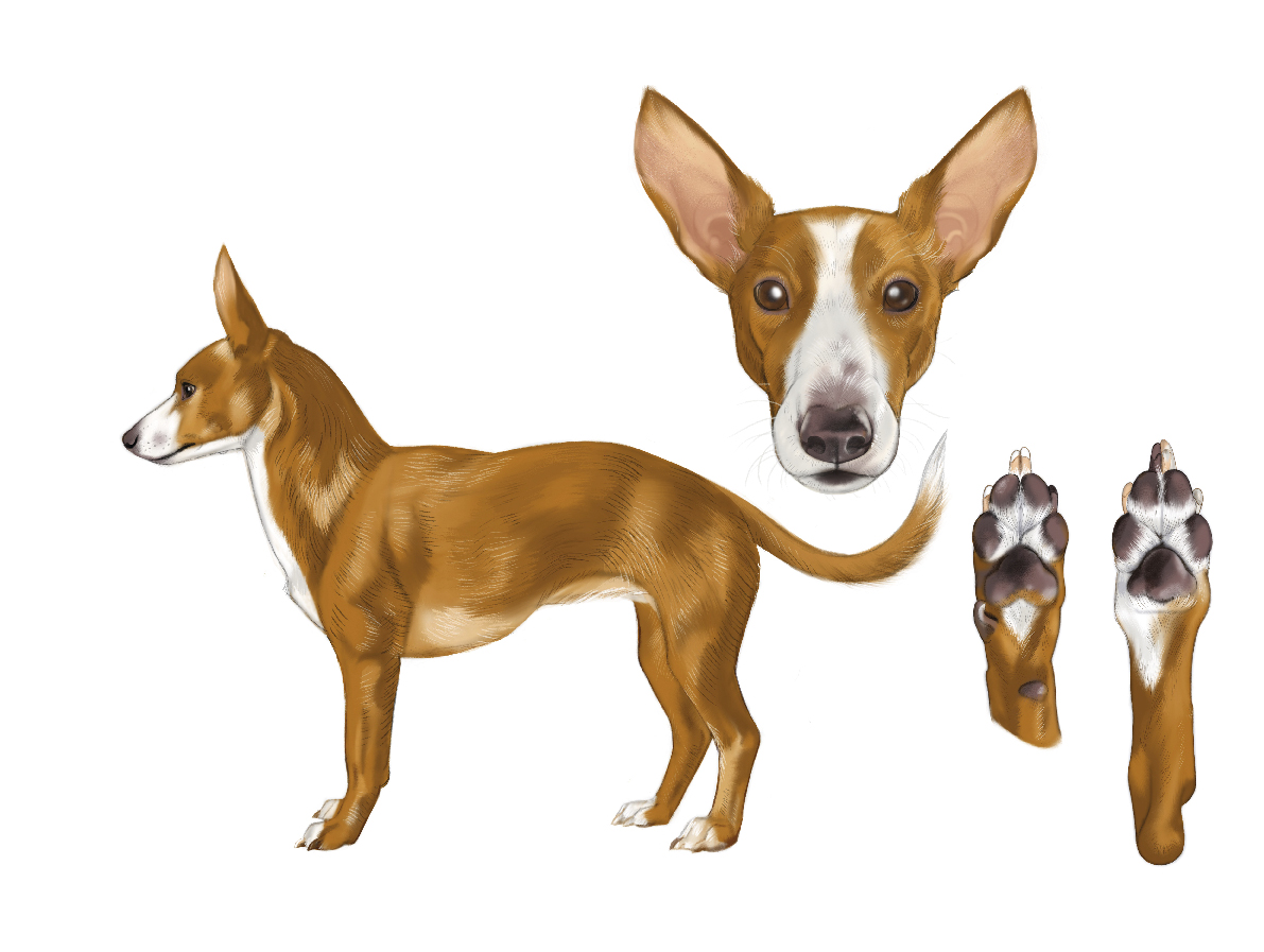Scientific illustration of a dog, combining anatomical accuracy with detailed rendering to clearly communicate biological features while maintaining visual clarity and educational value.